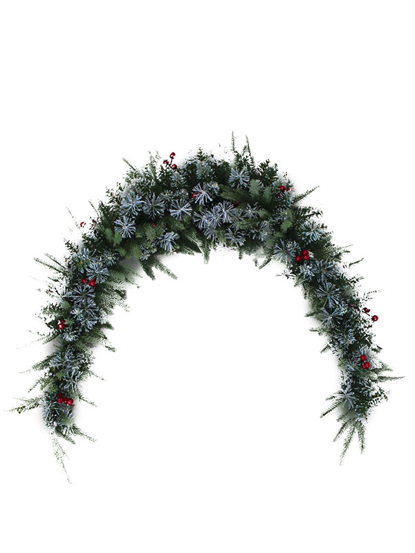 พวงมาลัยคริสต์มาสรูปทรงพิเศษพร้อมหิมะและผลเบอร์รี่สีแดง-PE PVC SW