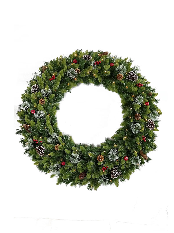 พวงหรีดคริสต์มาสพร้อมการตกแต่งโคนต้นสน - WD21120