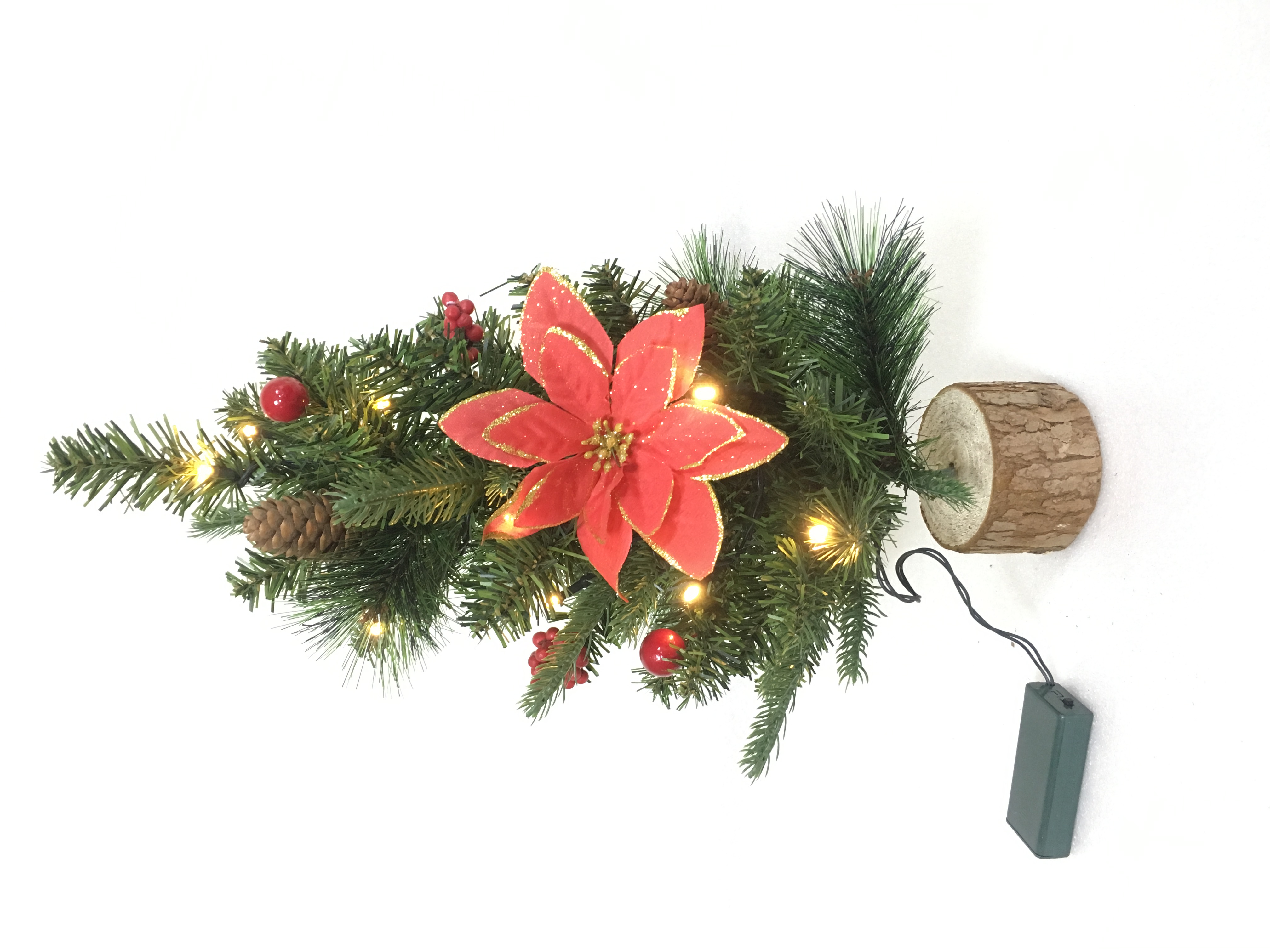 PVC PE Pine Needle Series ต้นคริสต์มาส - 40 ซม. หัวไม้ขนาดเล็กและเท้าพร้อมการตกแต่ง